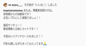 それを分かりにくくするために保育園からの幼なじみの美容師ひさおさんにいつも髪型をお願いしているそうです。